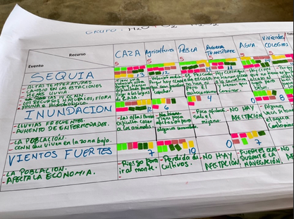Las comunidades compartieron ejemplos concretos de medidas de adaptación, destacando desafíos como la vaciante (sequías) y la creciente (aumento del cauce del río). Aunque los ríos amazónicos experimentan naturalmente vaciantes y crecientes, eventos extremos más intensos, duraderos y frecuentes en los últimos años han tenido un gran impacto en las comunidades. Ante la vaciante, subrayaron la necesidad de ampliar las chacras para compensar la escasez de pesca. Frente a la creciente, resaltaron los riesgos de enfermedades y la necesaria precaución cuando se construye cerca a las riberas.
